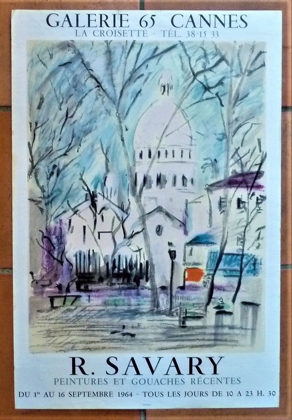 R. Savary. "Peintures et Gouaches récentes". Affiche éditée à l'occasion de l'exposition à la "Galerie 65 Cannes"; du 1er au 16 septembre 1964