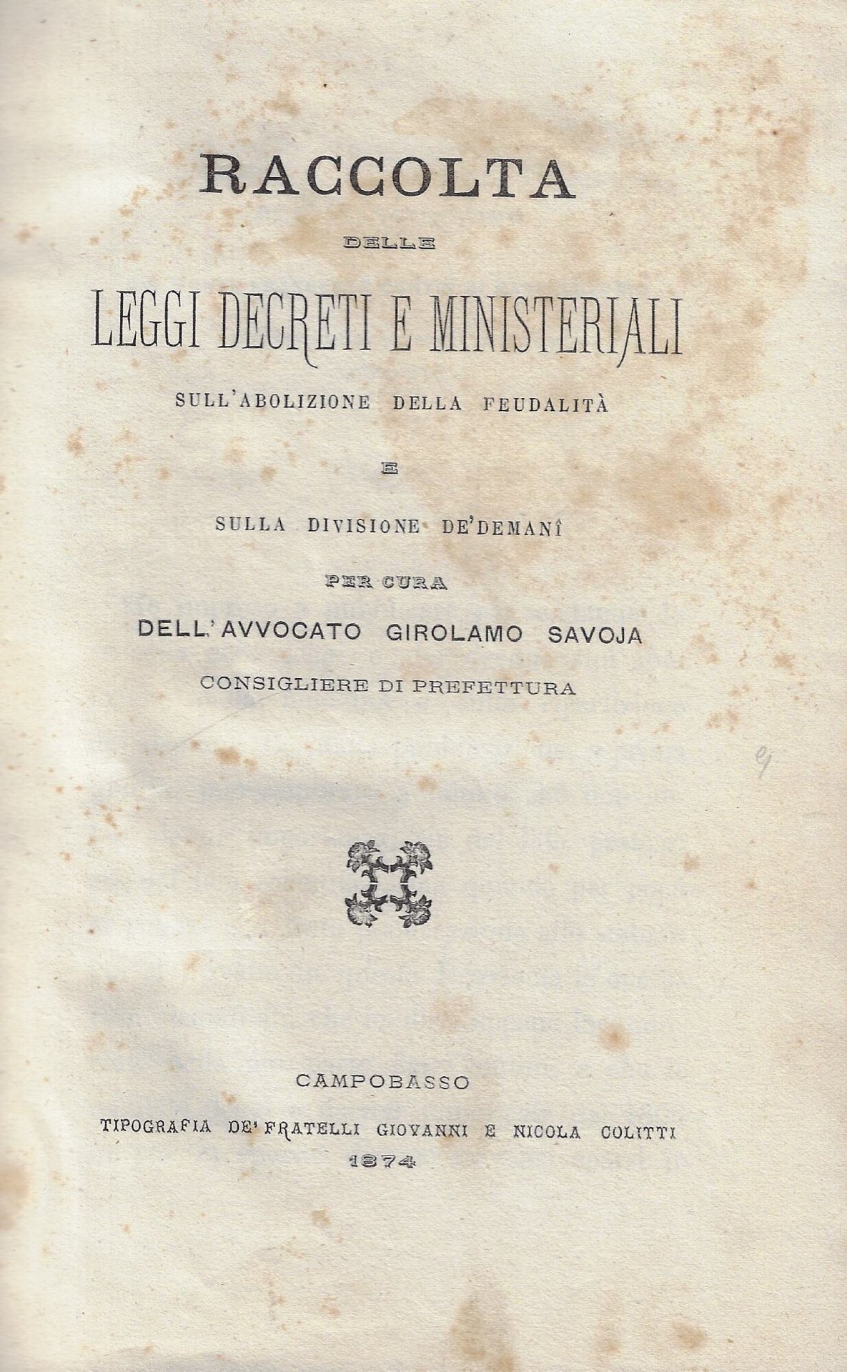 Raccolta delle leggi decreti e ministeriali sull'abolizione della feudalità e sulla divisione de' demanî /