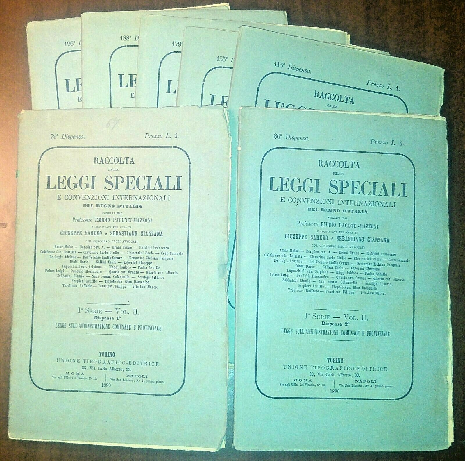 RACCOLTA DELLE LEGGI SPECIALI E CONVENZIONI INTERNAZIONALI 7 fascicoli 1880