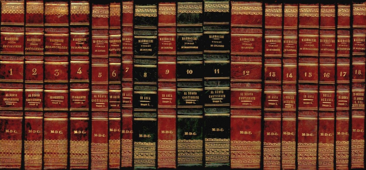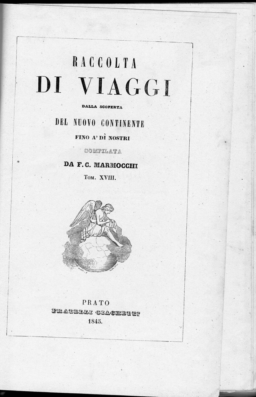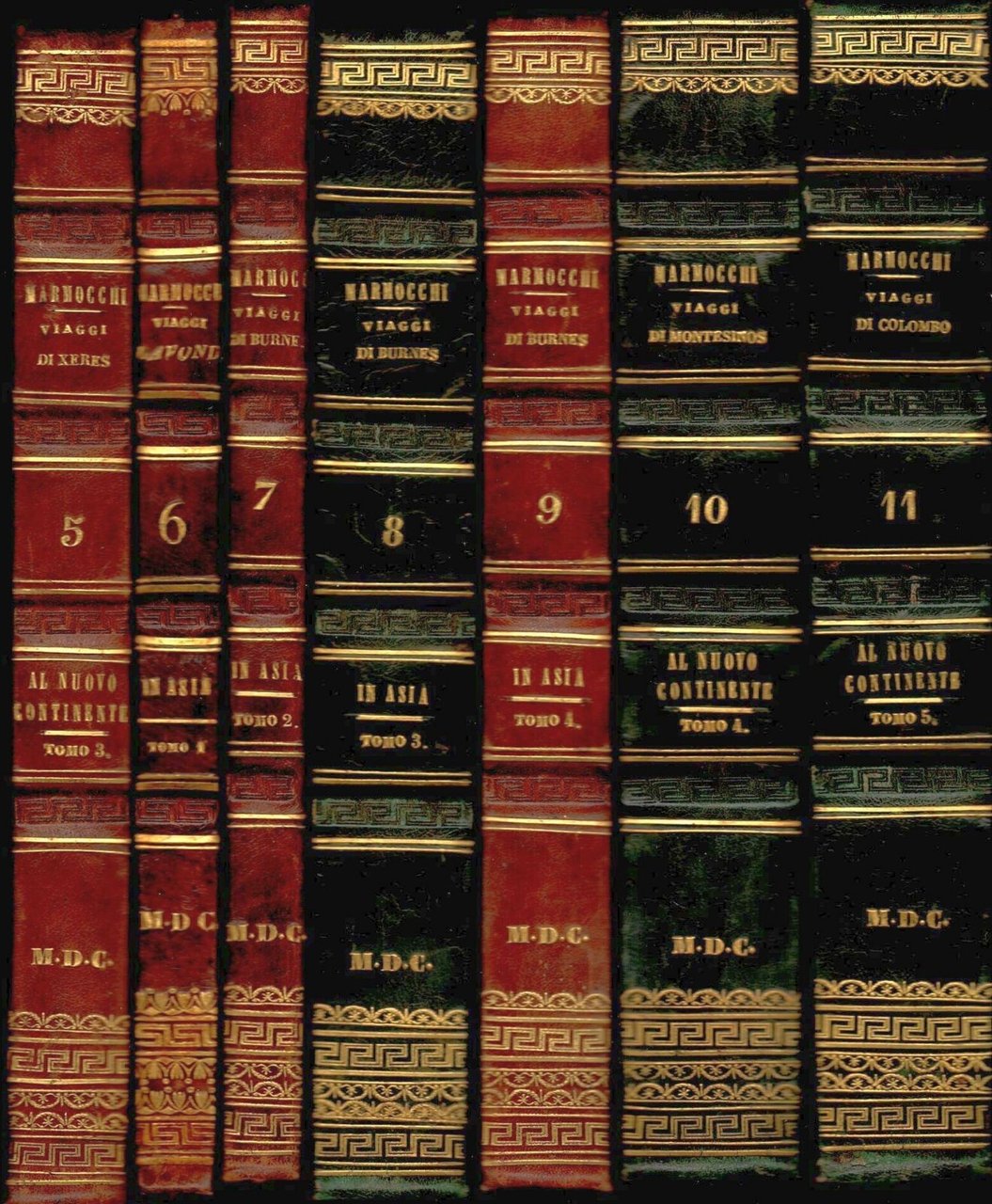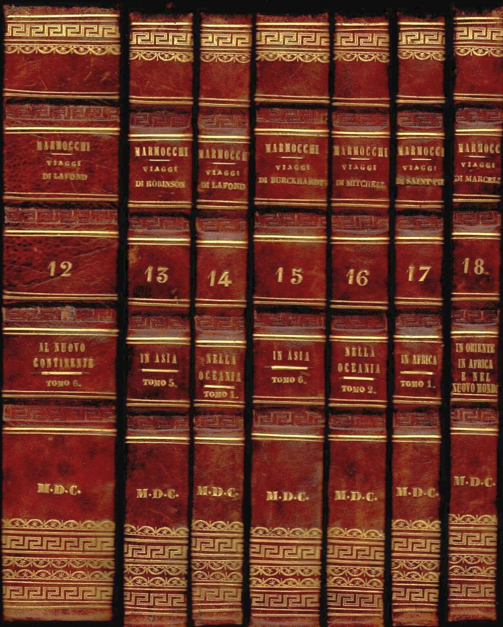 RACCOLTA DI VIAGGI DALLA SCOPERTA DEL NUOVO CONTINENTE fino a dì nostri compilata da F. C. Marmocchi. Opera completa di 18 tomi in 18 volumi. A fine del XVIII volume: VIAGGIO NELLE CONTRADE DI MESOPOTAMIA DI CALDEA E DI ASSIRIA del colonnello Chesney e VIAGGIO A MEROE IN ETIOPIA dell'Hoskins.