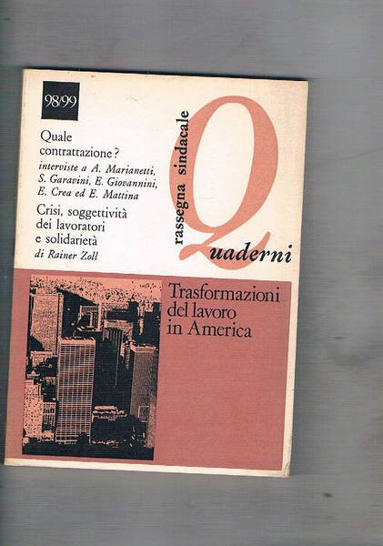 Rassegna sindacale quaderni, bimestrale, anno 1982 set-dic. n° 98/99. Trasformqazione del lavoro in America.