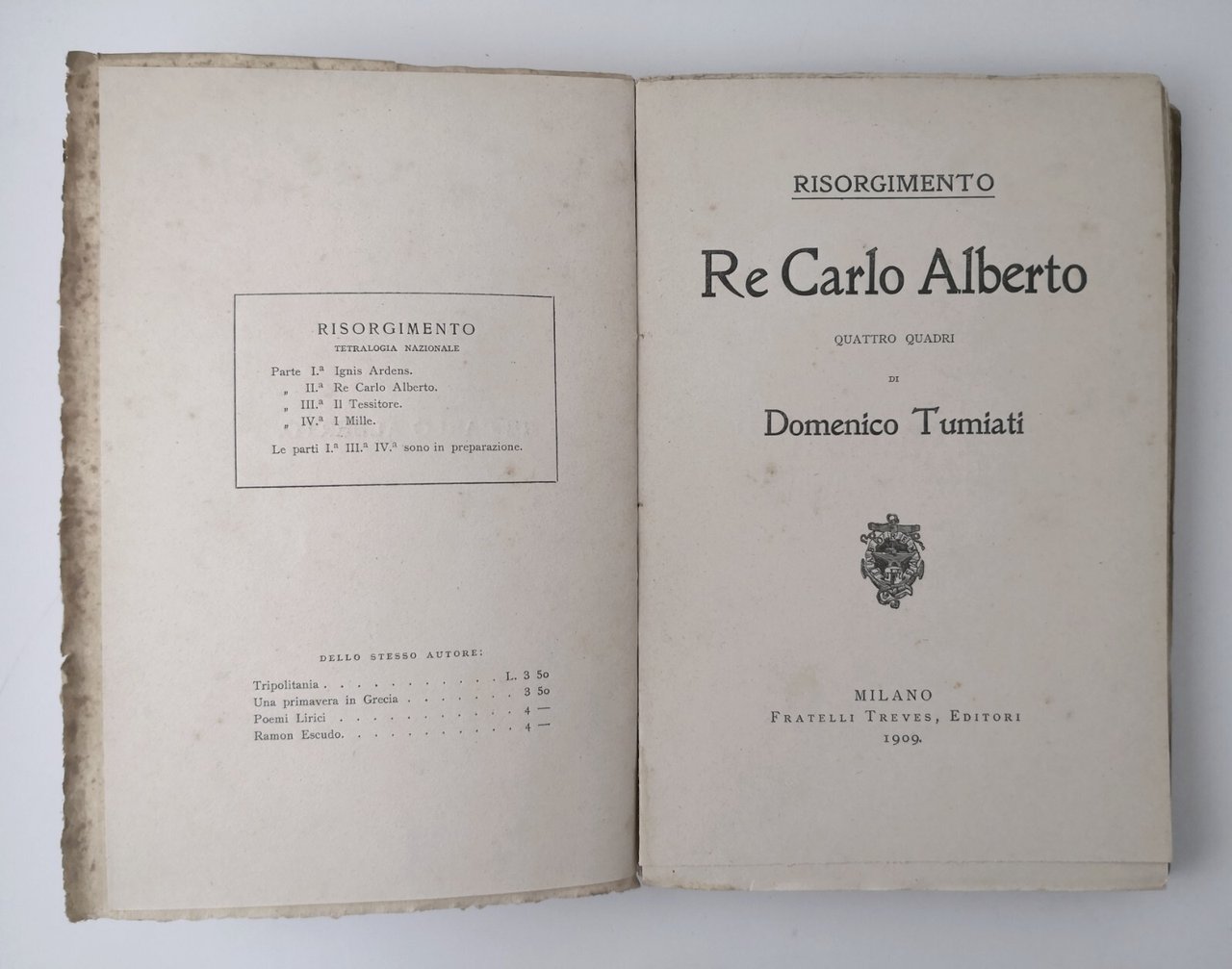 RE CARLO ALBERTO quattro quadri di Domenico Tumiati 1909 Treves Libro teatro