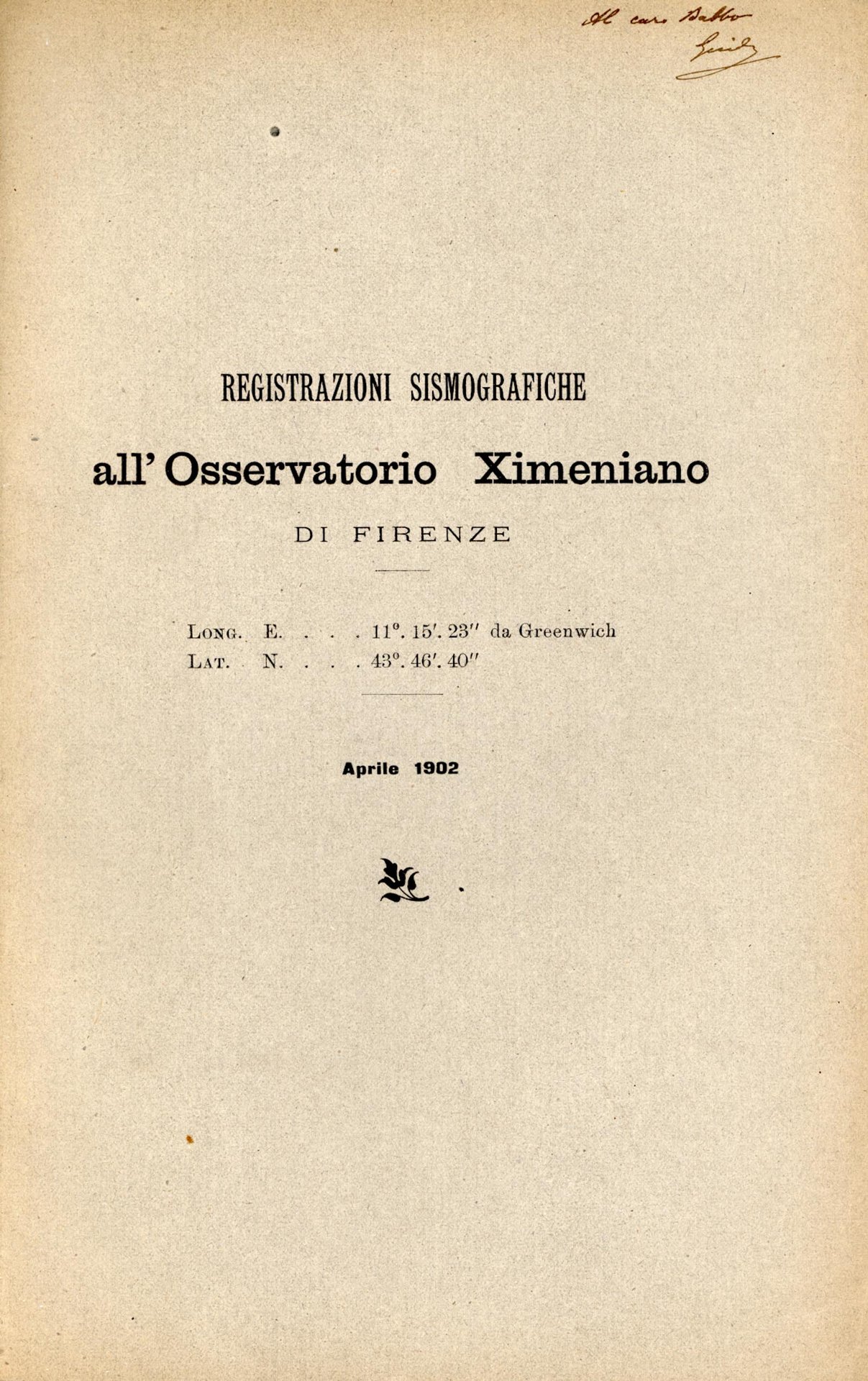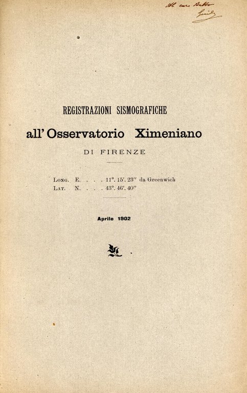 registrazioni sismografiche all'osservatorio Ximeniano di Firenze 1902