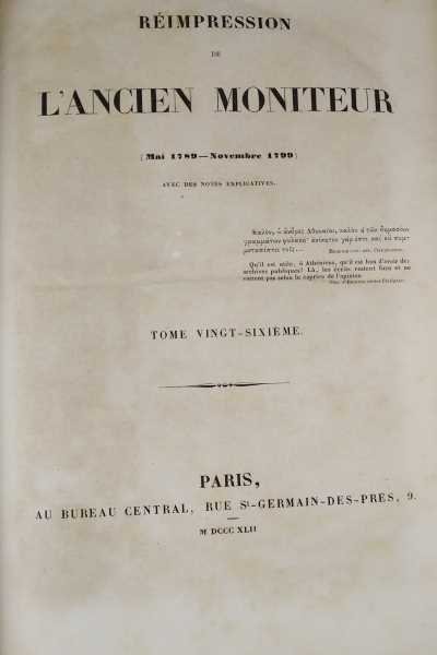 Réimpression de L'ancien Moniteur. Mai 1789 - Novembre 1799. Tome Vingt-sixième