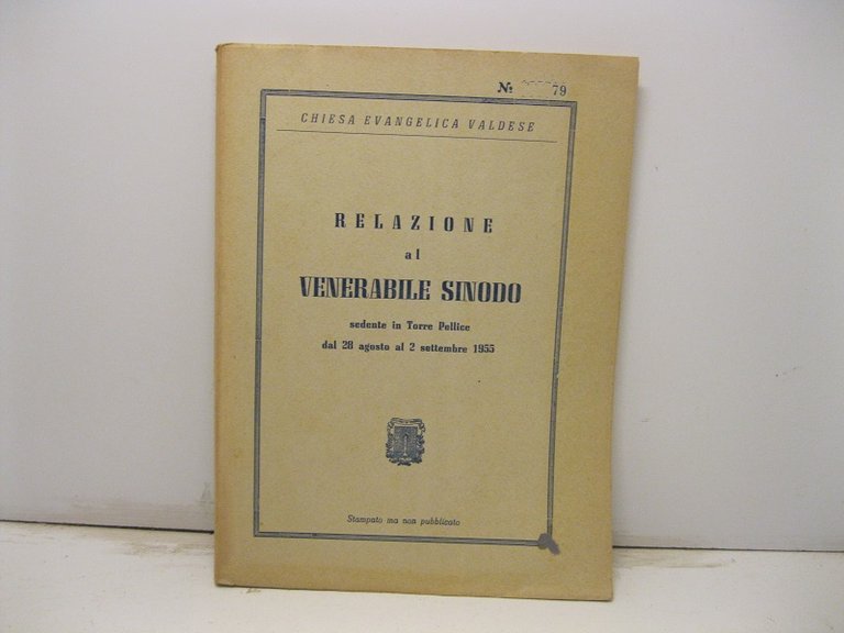 Relazione al Venerabile Sinodo sedente in Torre Pellice dal 28 agosto al 2 settembre 1955.