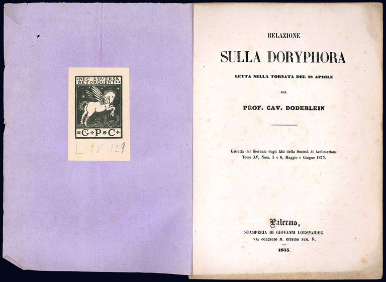 Relazione sulla Doryphora letta nella tornata del 18 aprile dal prof. cav. Doderlein.