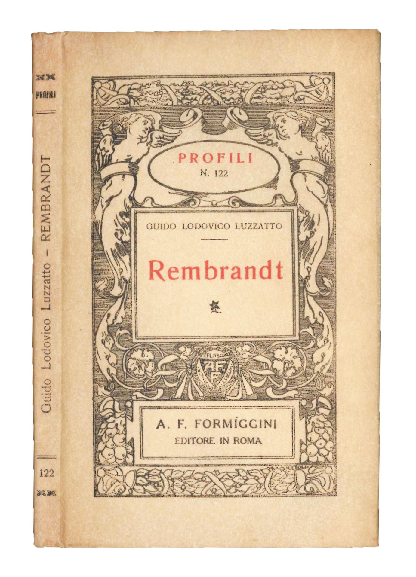 Mm. 167x104. Pp. 83, [5] cc. di tavv. in b/n f.t. e antiporta con ritratto di Rembrandt in b/n. Brossura editoriale in carta pergamena con titolo entro cornice ornamentale. Prima edizione. Opera appartenente alla collezione 'Profili', nr. 122. Buona copia, in barbe.