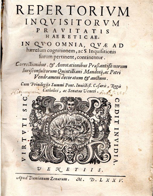 REPERTORIUM INQUISITORUM pravitatis haereticae. In quo omnia, quae ad haeresum cognitionem, ac S. Inquisitionis forum pertinent, continentur.