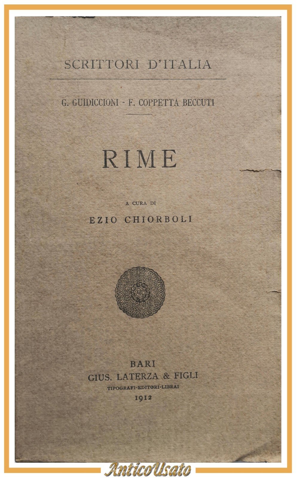 RIME di Guidiccioni e Coppetta Beccuti 1912 Laterza scrittori d'Italia Libro