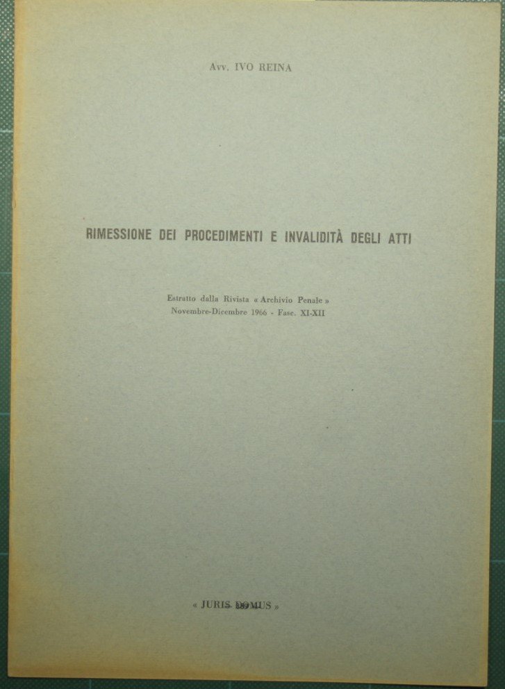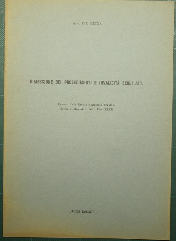 Estratto dalla Rivista 'Archivio Penale' - Novembre-Dicembre 1966 - Fasc. XI-XII - in 8° - pp.8 - Brossura editoriale