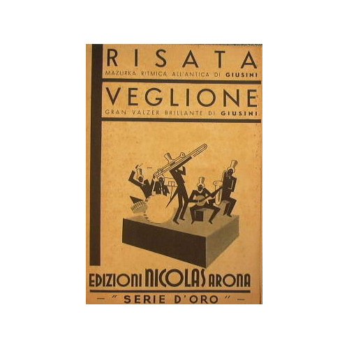 Serie d'oro - in 8° - pp.25 - Brossura editoriale illustrata - Partitura per Armonica, Pianoforte, Violini, Contrabbasso, Saxofono Contralto, Saxofono Tenore, Tromba, Trombone e Violoncello.