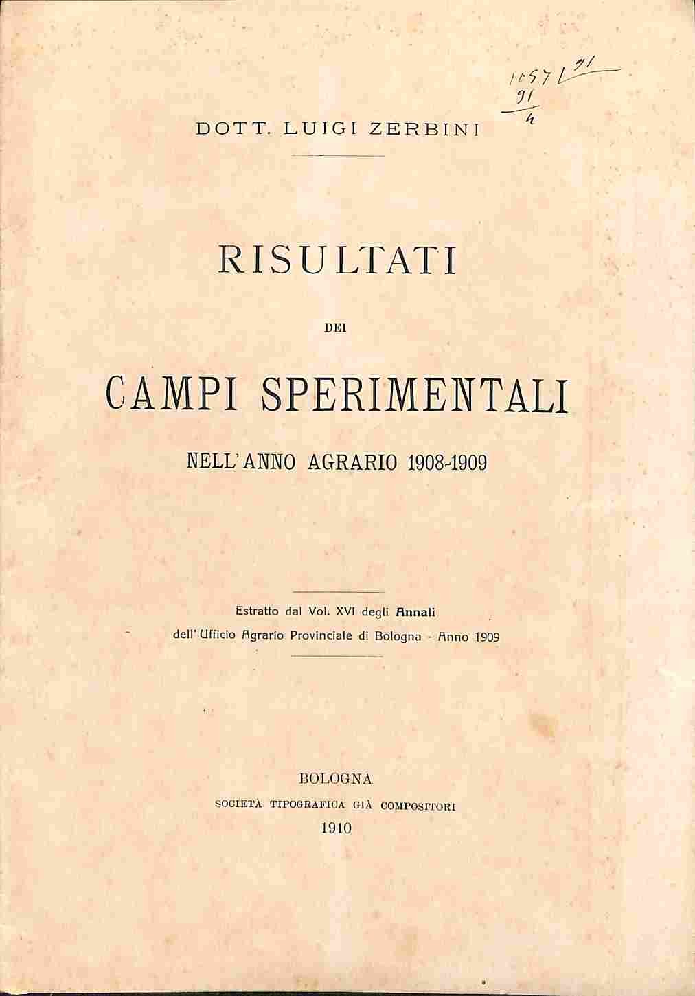 Risultati dei campi sperimentali nell'anno agrario (1908-1909)