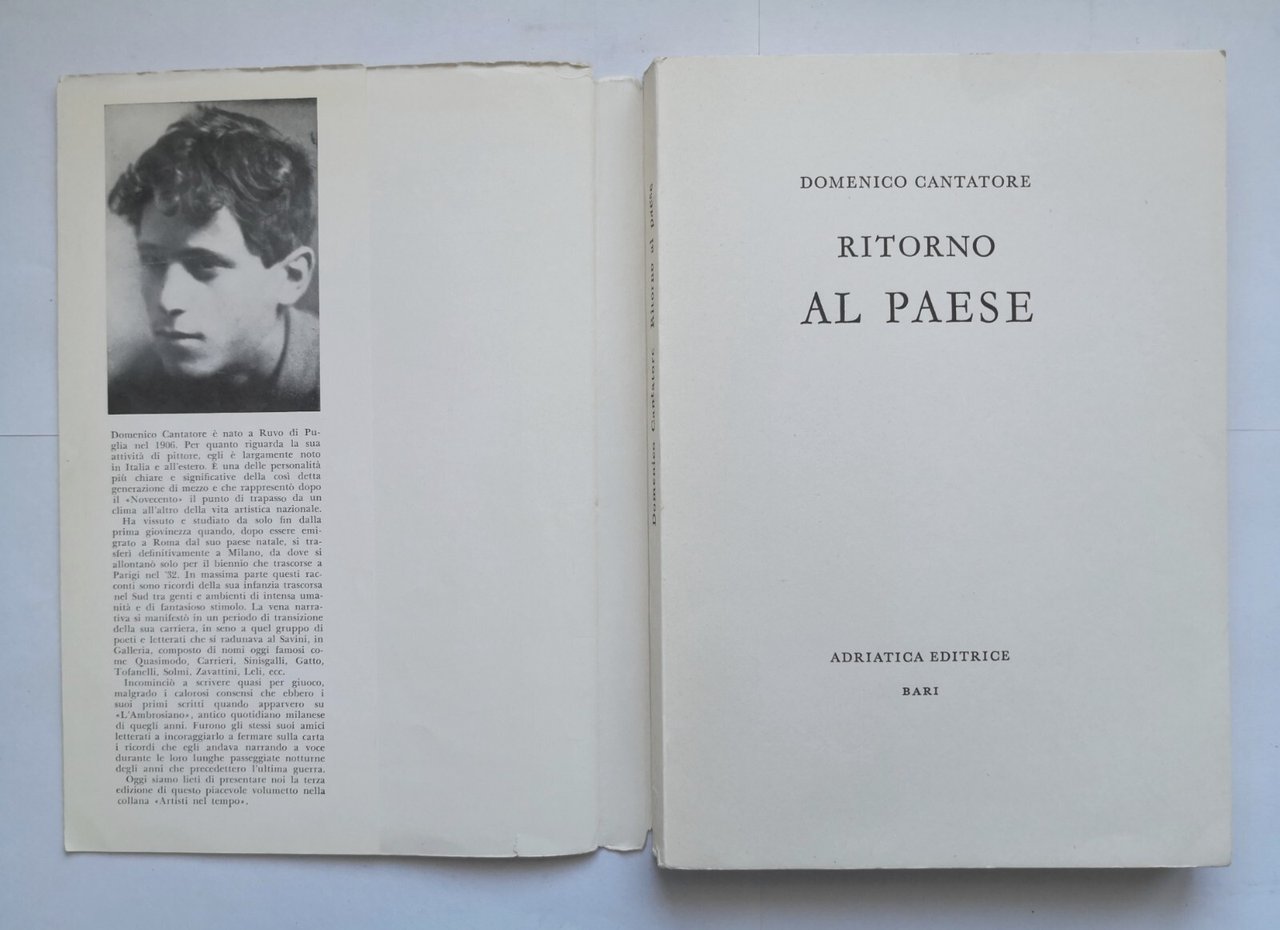 RITORNO AL PAESE di Domenico Cantatore 1966 Adriatica libro romanzo illustrato
