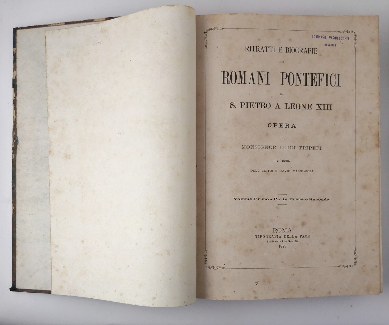 RITRATTI E BIOGRAFIE DEI ROMANI PONTEFICI da San Pietro a Leone XIII di Monsignor Luigi Tripepi per cura dell'editore David Valgimigli. Volume I, Parte I e II.