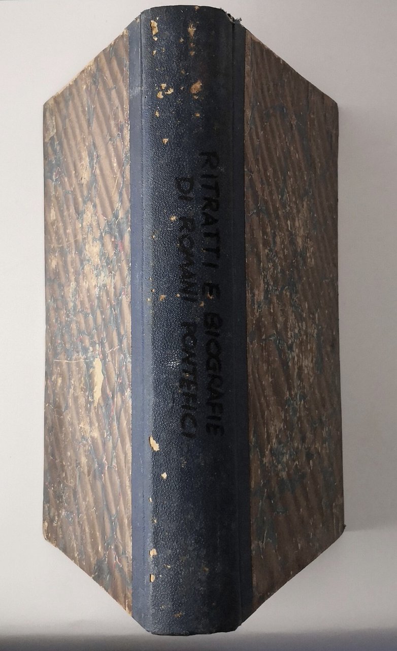 255 pagine, 122 magnifiche tavole a colori fuori testo con i ritratti dei pontefici. Copertina non editoriale in tutta tela con titolo manoscritto al dorso. Stato di conservazione: molto buono (pagine normalmente ingiallite, fioriture, copertina un po' sciupata)