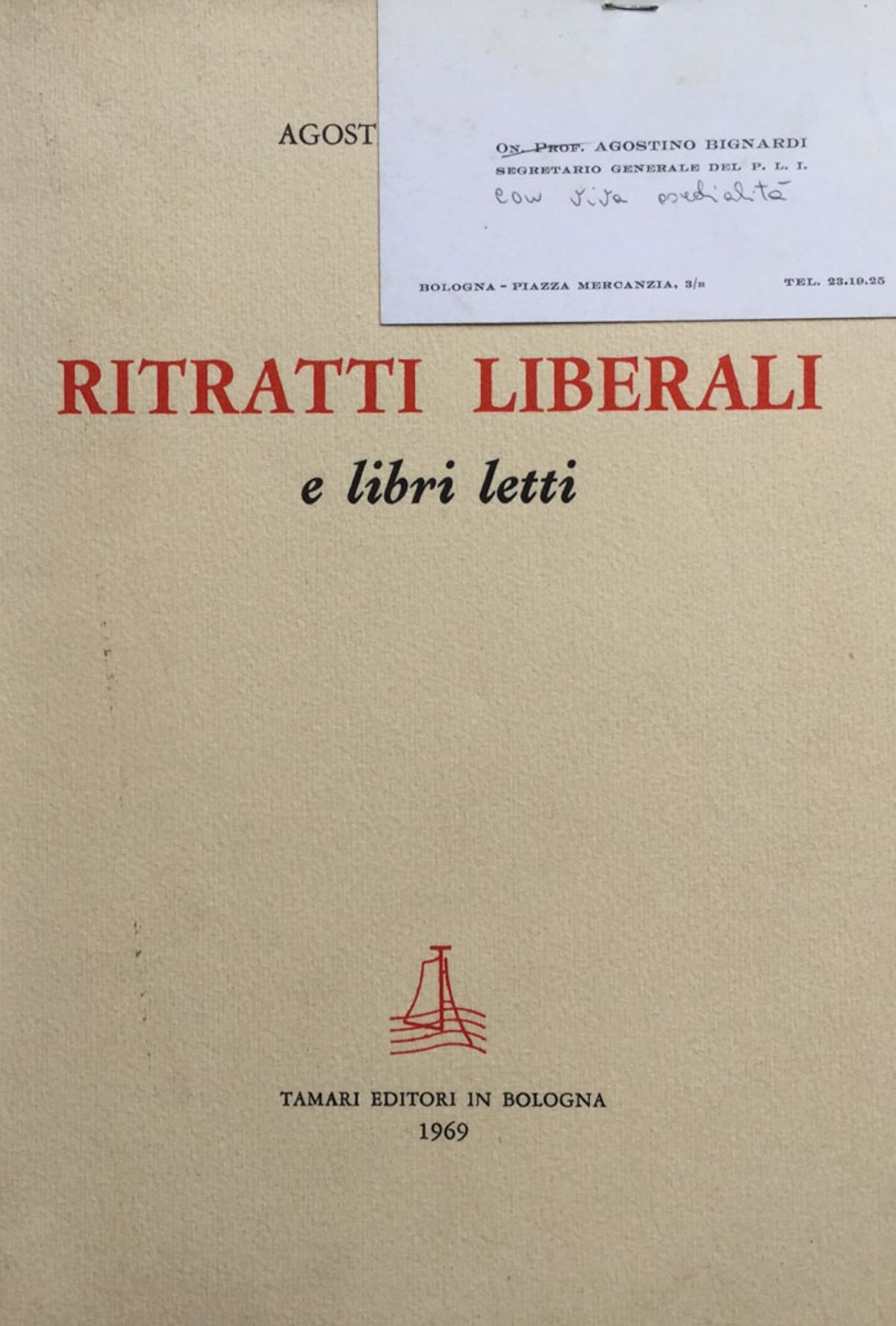 Agostino Bignardi (1921-1983), bolognese, è stato un uomo politico italiano. 320 LOC 24 cm. Ottimo (Fine) Ottimo