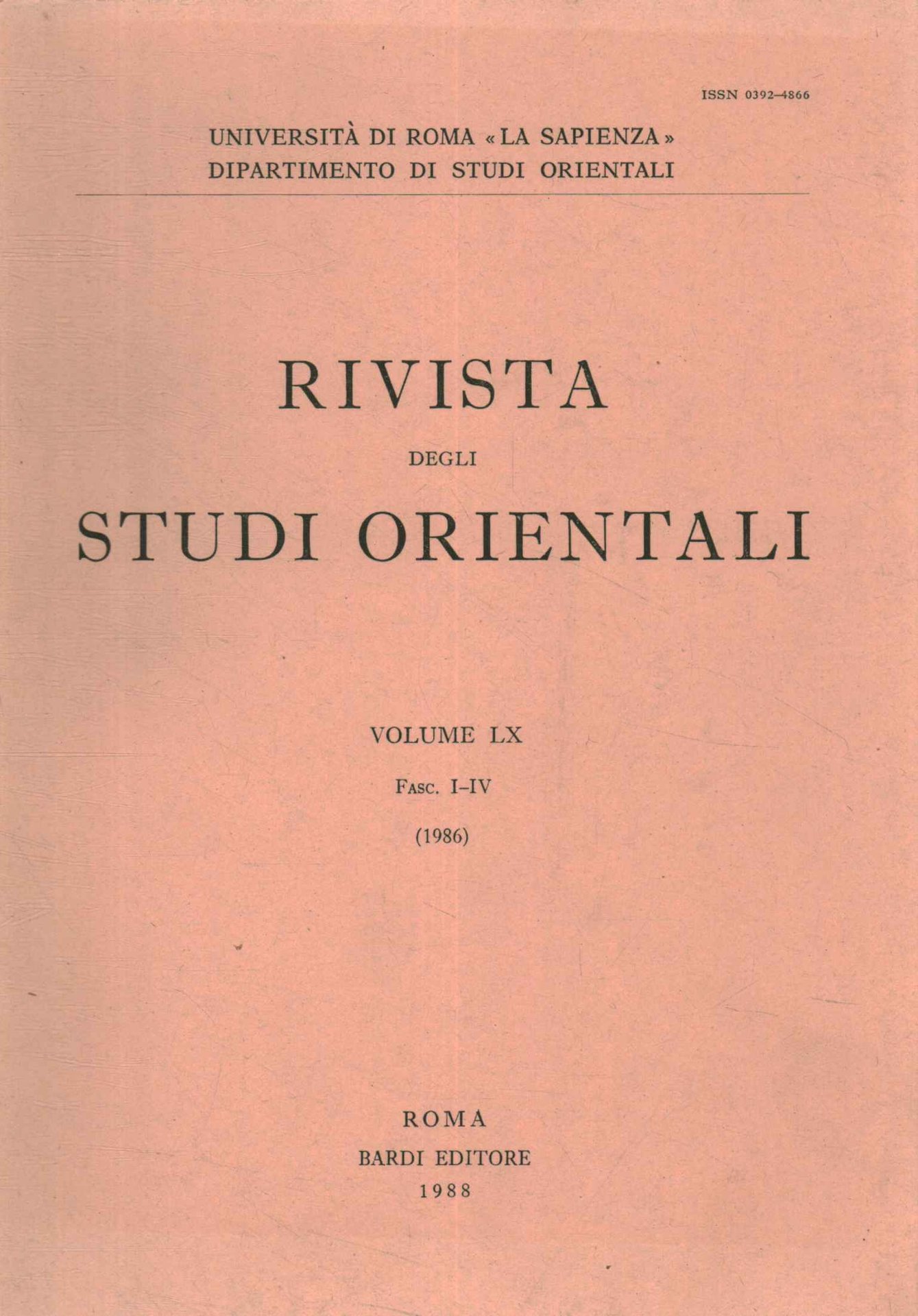 Rivista degli studi orientali Vol LX (1986 n. I-IV)