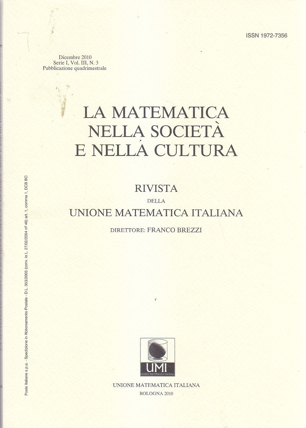 RIVISTA DELLA UNIONE MATEMATICA ITALIANA DICEMBRE 2010 società cultura