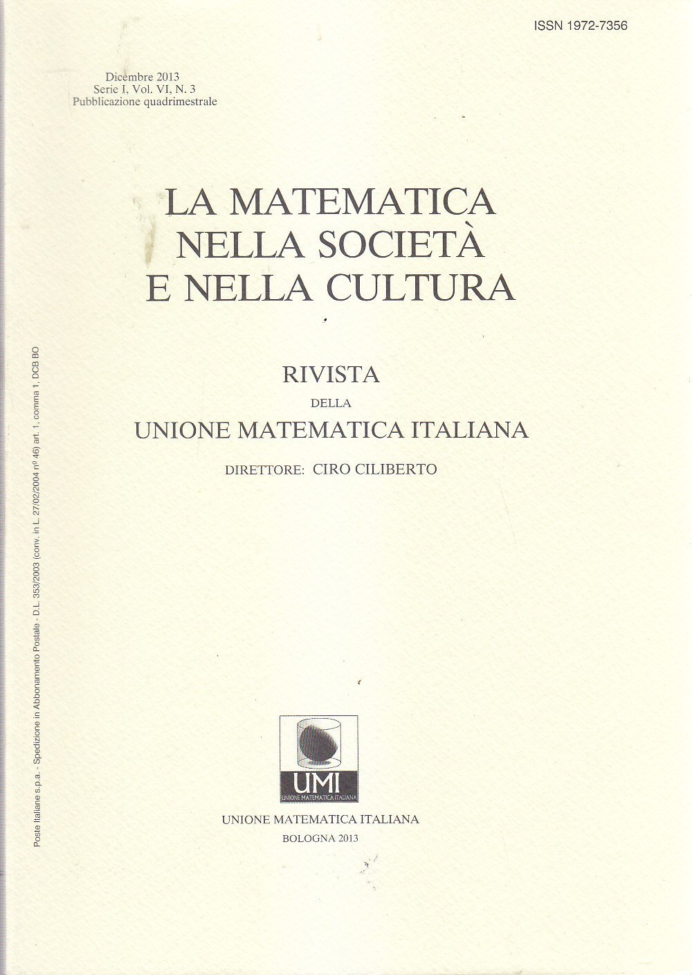 RIVISTA DELLA UNIONE MATEMATICA ITALIANA DICEMBRE 2013 società cultura