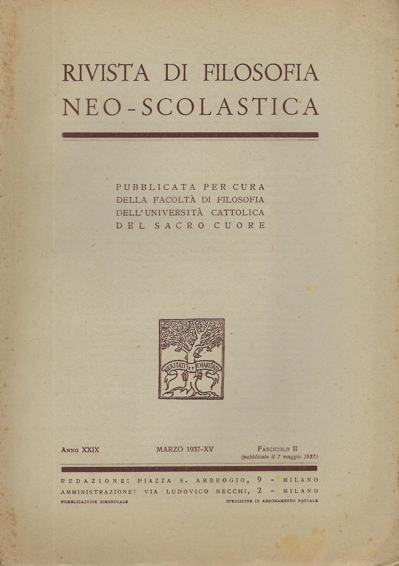 Rivista di filosofia neo-scolastica anno XXIX, fascicolo 2, marzo 1937