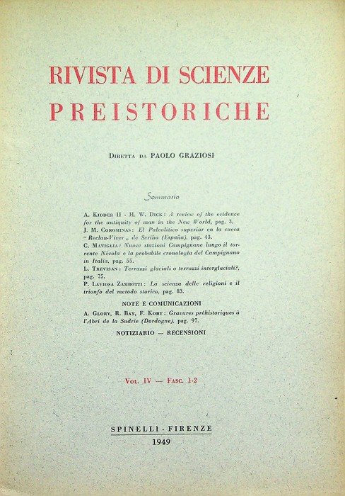 Rivista di scienze preistoriche: Vol. IV - Fasc. 1-2 (1949). | Livres anciens et modernes |