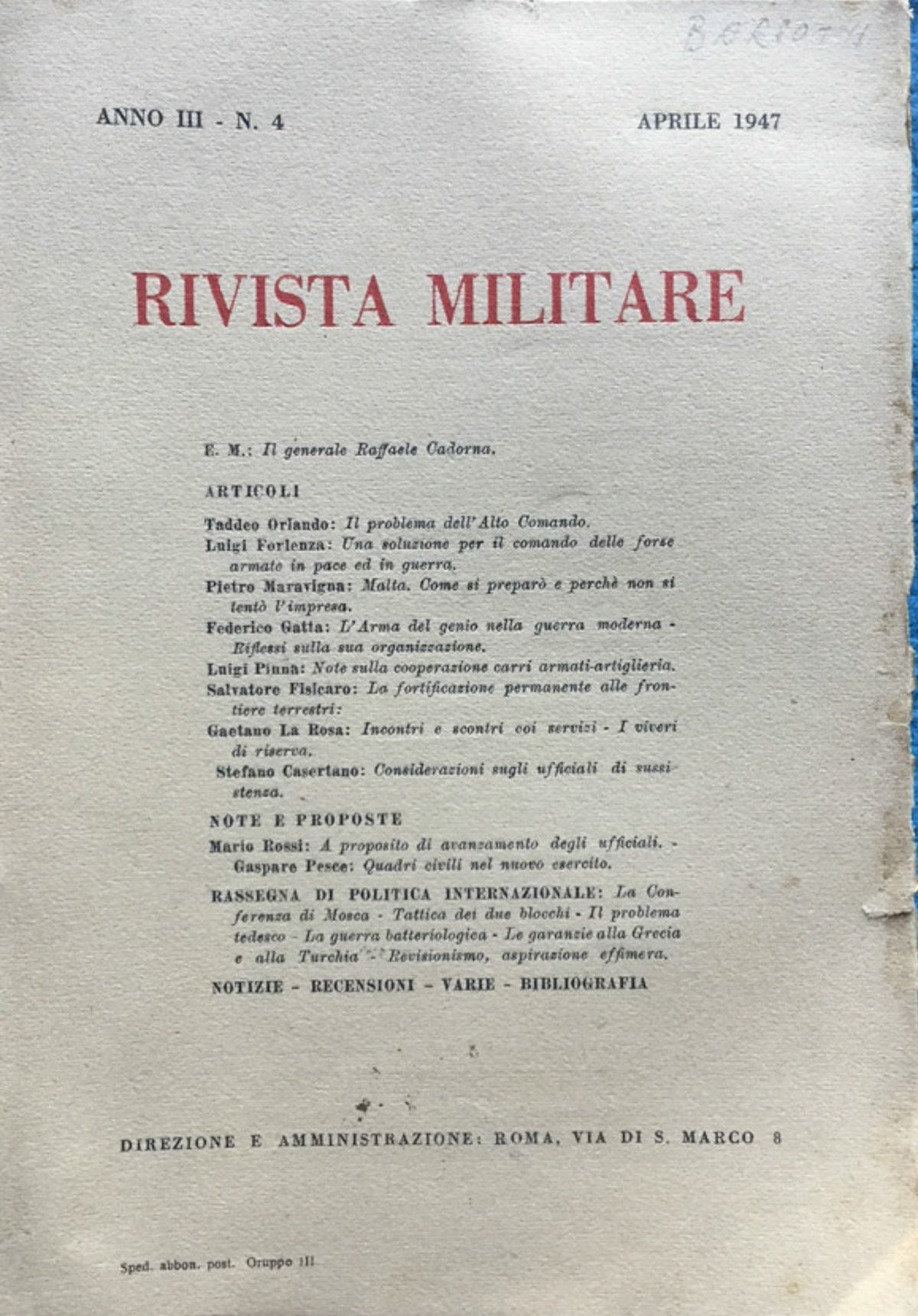 Rivista Militare Anno III n. 4 Aprile 1947