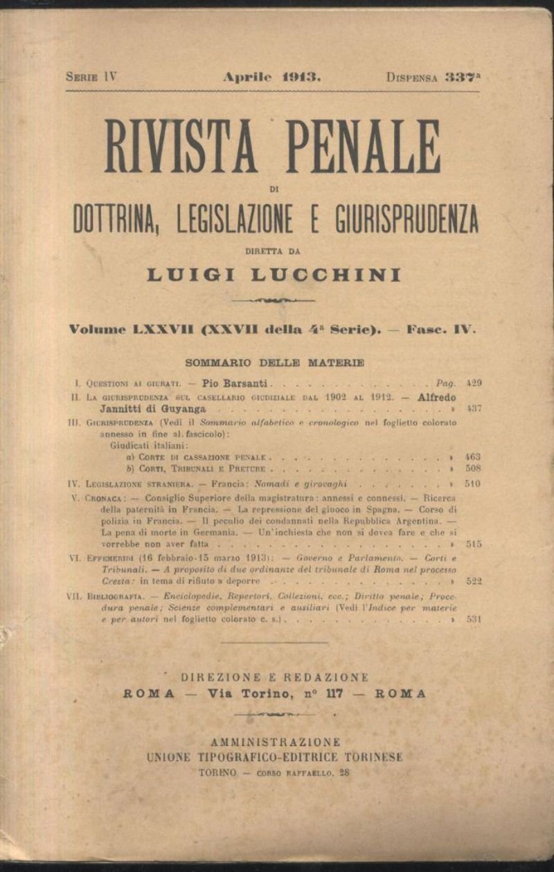 RIVISTA PENALE DOTTRINA LEGISLAZIONE GIURISPRUDENZA