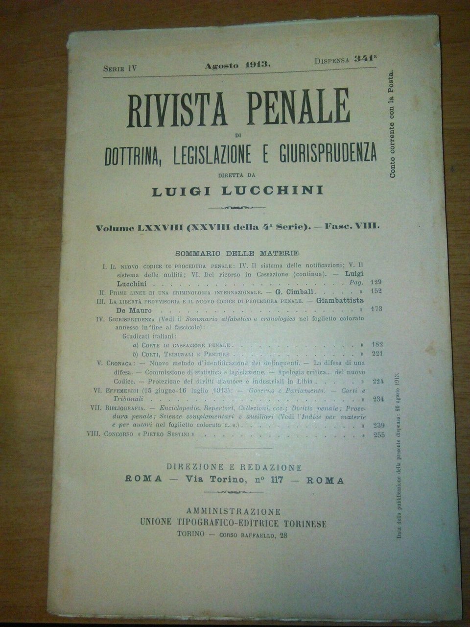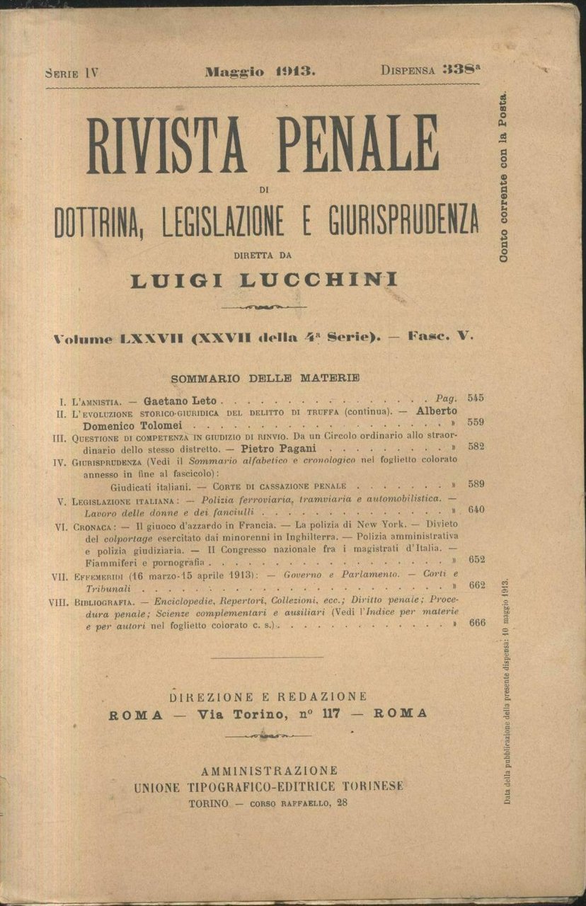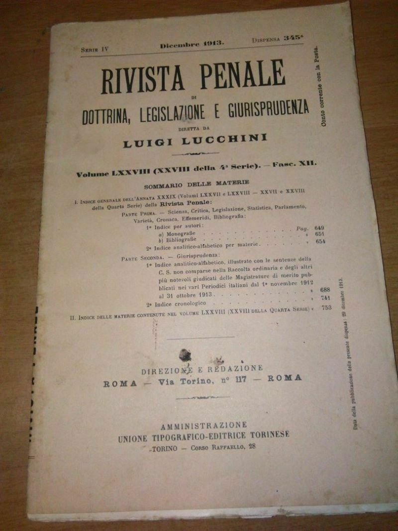 RIVISTA PENALE DOTTRINA LEGISLAZIONE GIURISPRUDENZA 1913 annata completa Libro