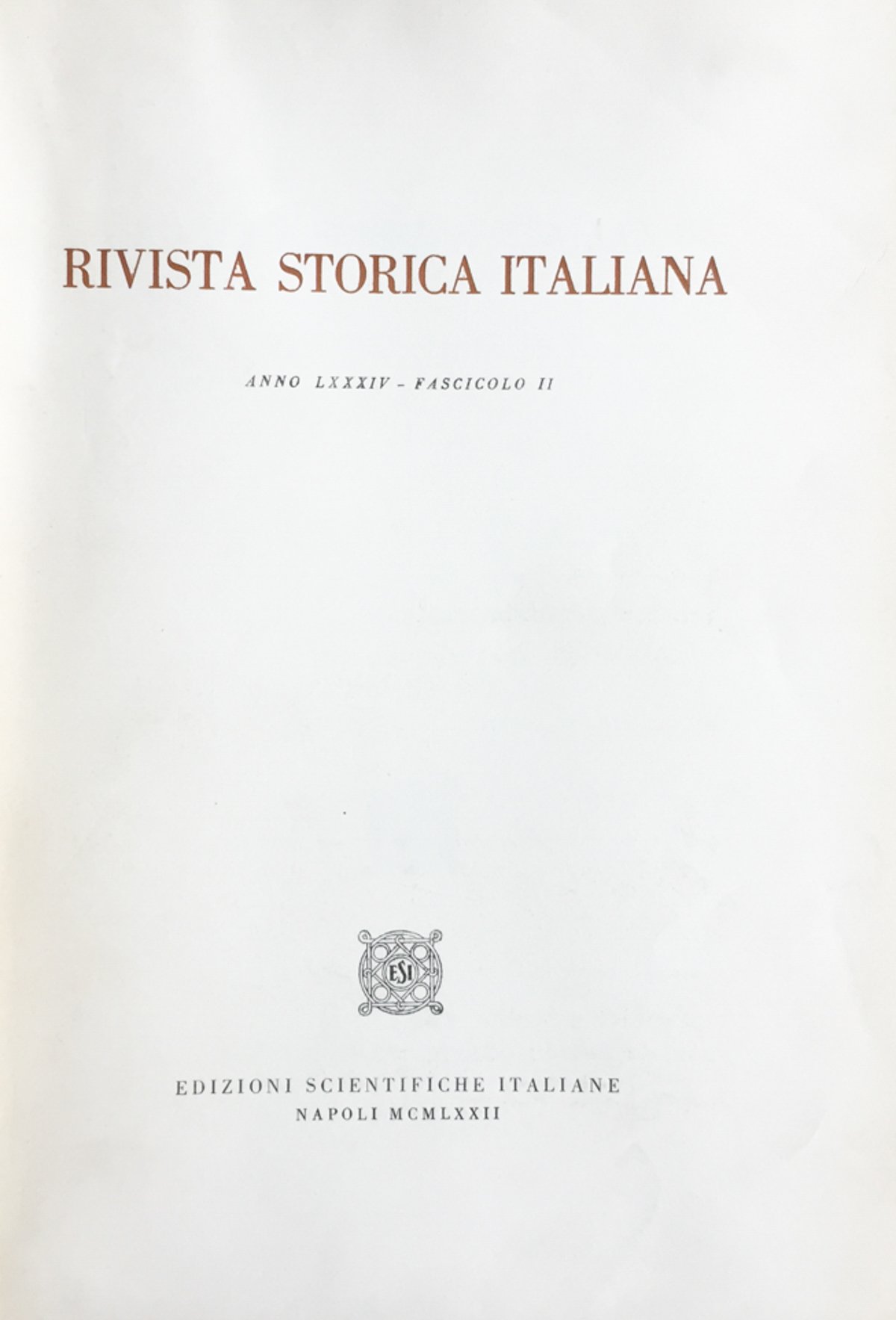 Anno LXXXIV (1972) Fasc. II : L'eta' di Ivan III, ricerche e note nei rapporti tra Russia e Occidente nel sette e ottocento, Sazonov e la cultura italiana e altro. 945 � Ba In Ottavi (15-23cm ) Ottimo (Fine) Ottimo