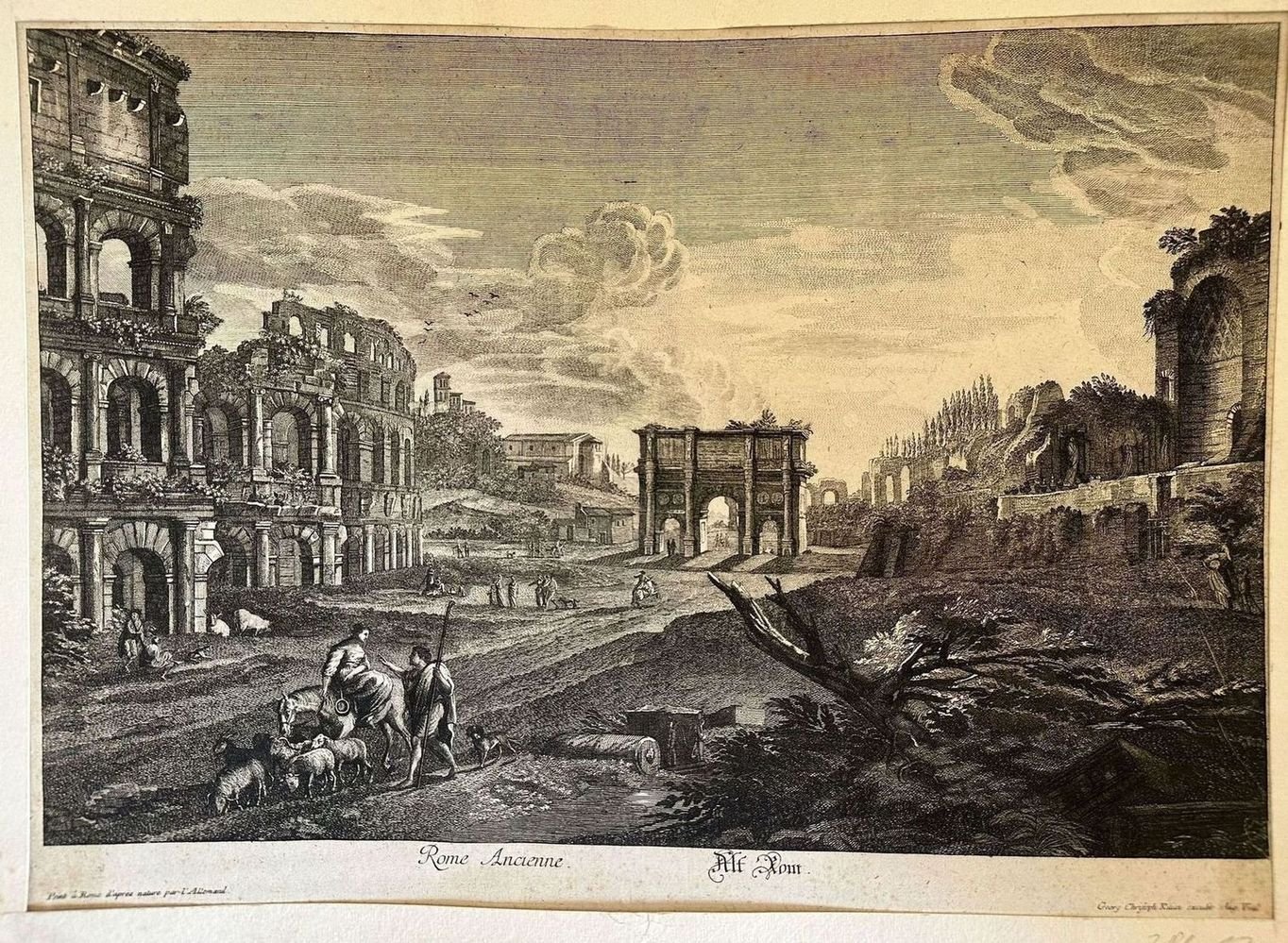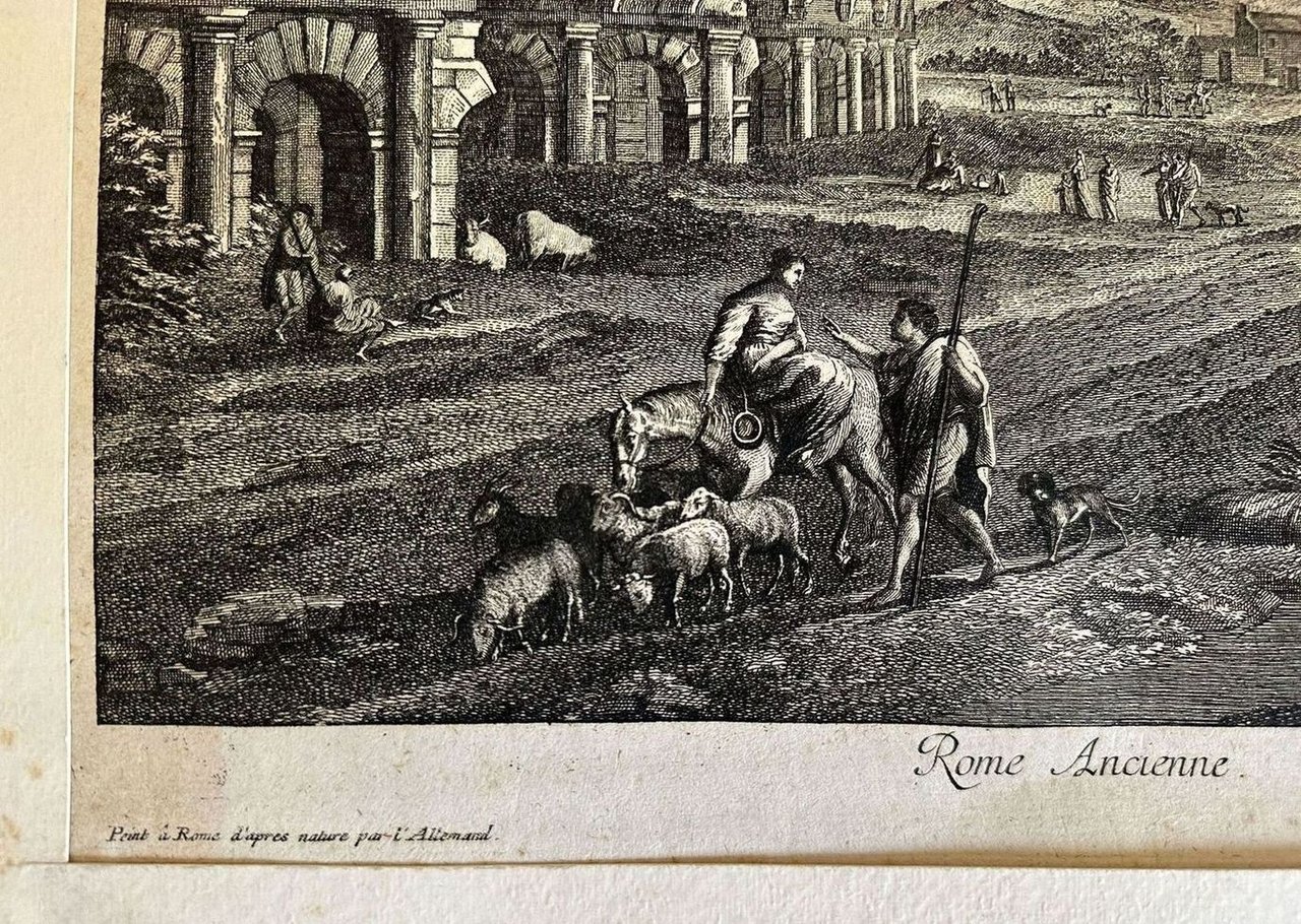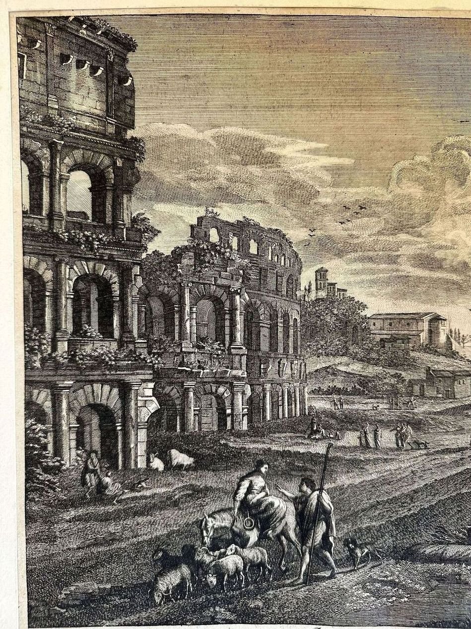 Finissima veduta animata di Roma Antica. L'incisione è stata montata su cartoncino Autore: Georg Christoph Kitian Data: XVIII secolo Tecnica: Acquaforte Dimensione del passepartout: 50,5x35,5 cm Dimensione incisione: 44,5x31,5 cm Condizioni: Buone. Alcune fioriture.Very fine animated view of Ancient Rome. The engraving has been mounted on carton base Author: Georg Christoph Kitian Date: 18th century Technique: Etching Leaf Dimension:50,5x35,5 cm Engraving Dimension: 44,5x31,5 cm Conditions: Good conditions. Some foxing.