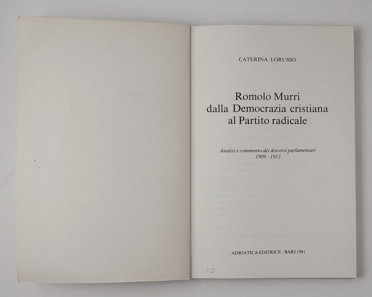 ROMOLO MURRI DALLA DEMOCRAZIA CRISTIANA AL PARTITO RADICALE di Lorusso 1981