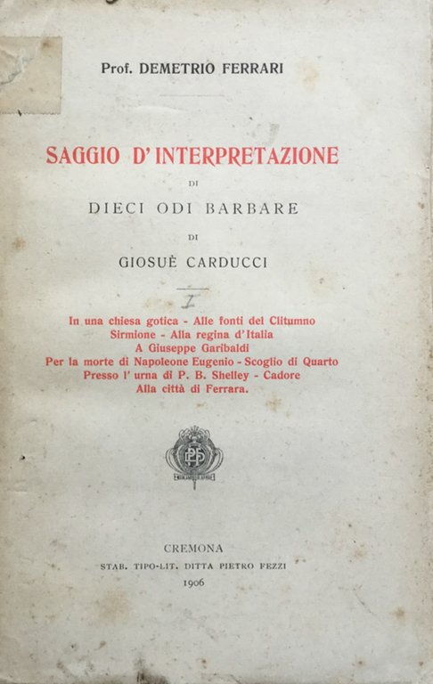 Saggio di interpretazione delle Odi Barbare di Giosuè Carducci