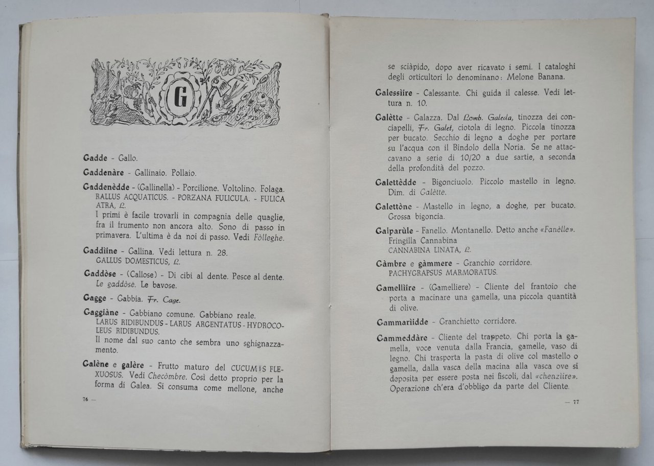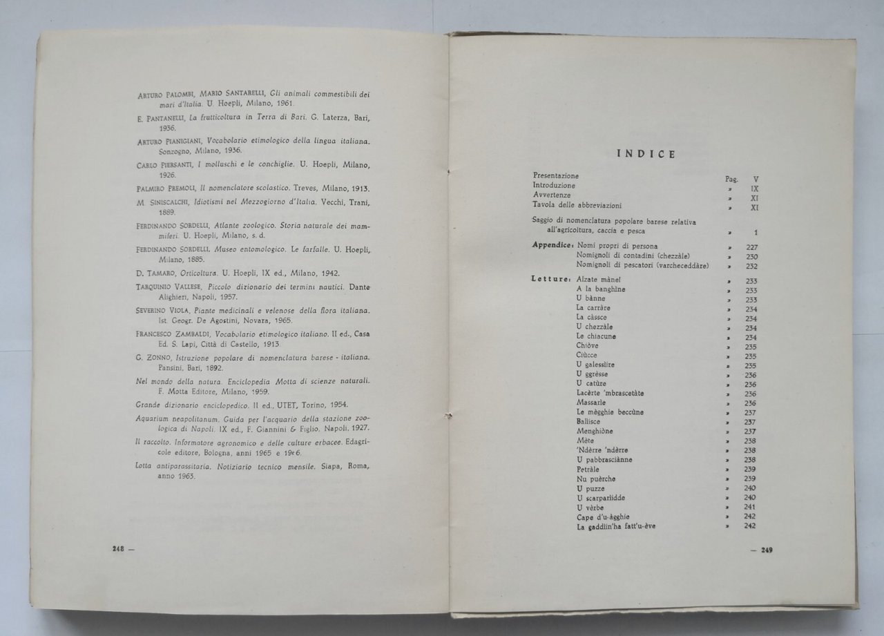 SAGGIO DI NOMENCLATURA POPOLARE BARESE di Carlo Scorcia. Relativa all'agricoltura, caccia e pesca.