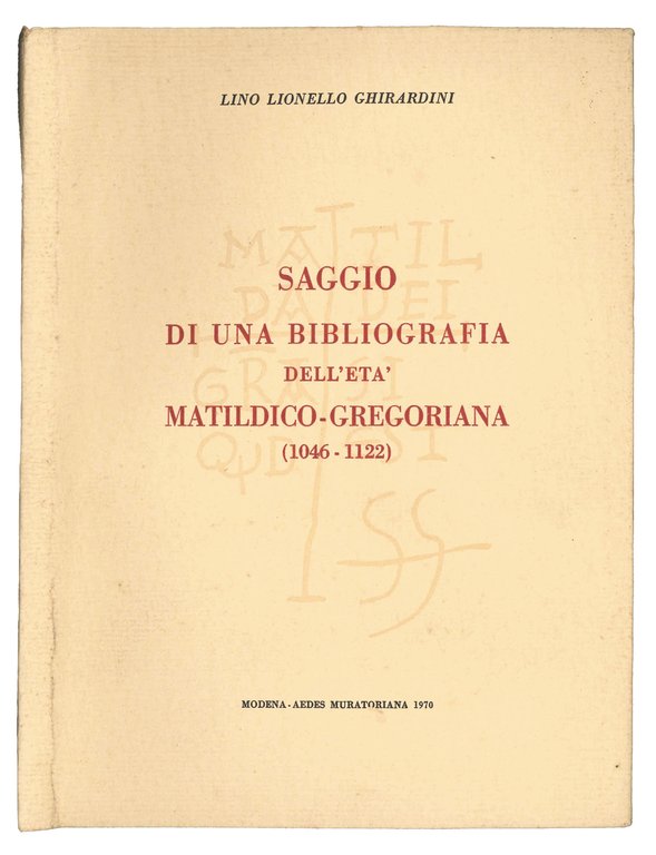 Mm. 238x170. Pp. XIII, 104. Brossura editoriale originale. Edizione in tiratura limitata di 750 esemplari. Prima edizione. Interessante bibliografia sui libri che riguardano Matilde di Canossa e Papa Gregorio VII. Volume appartenente alla collezione "Biblioteca / Deputazione di storia patria per le antiche provincie modenesi. Nuova serie", nr. 14. Ottima copia.