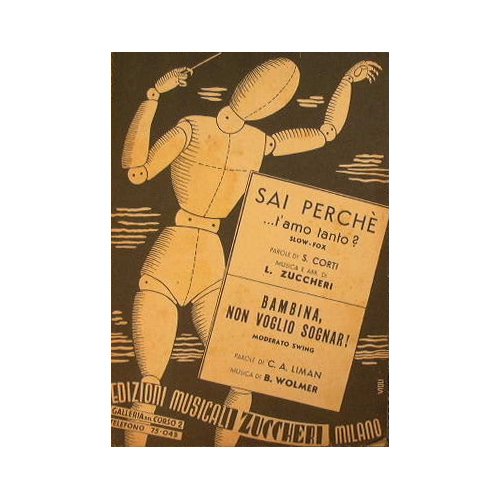 Autori: Corti S., Zuccheri L., Liman C. A. e Wolmer B. - in 8° - pp.15 - Brossura editoriale illustrata - Partitura per Pianoforte, Violini, Contrabbasso, Tromba, Saxofono Tenore e Saxofono Contralto.