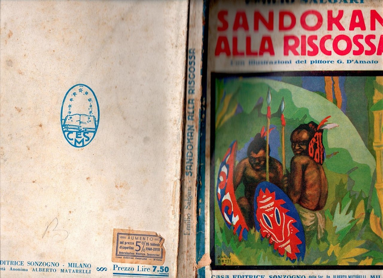 SANDOKAN ALLA RISCOSSA di Emilio Salgari. Romanzo d'avventure. Sonzogno Editore, 1936. 349 pagine, numerose illustrazioni in bianco e nero fuori testo di G. D'Amato. Copertina editoriale in brossura. Stato di conservazione: molto buono (pagine normalmente ingiallite, copertina un po' sciupata) Libro usato narrativa letteratura per l'infanzia