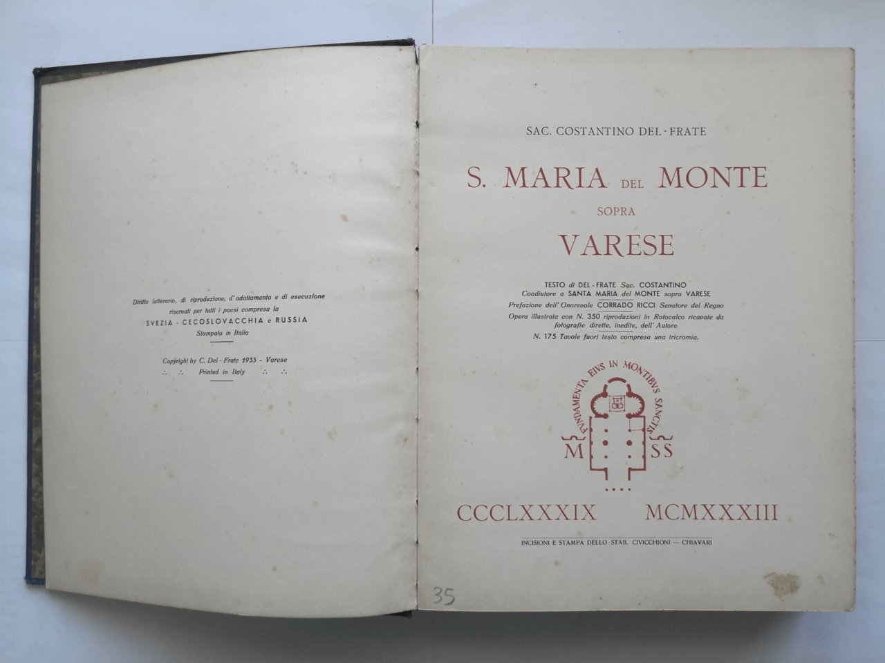 SANTA MARIA DEL MONTE SOPRA VARESE di Costantino Del Frate 1933 Libro S. chiesa