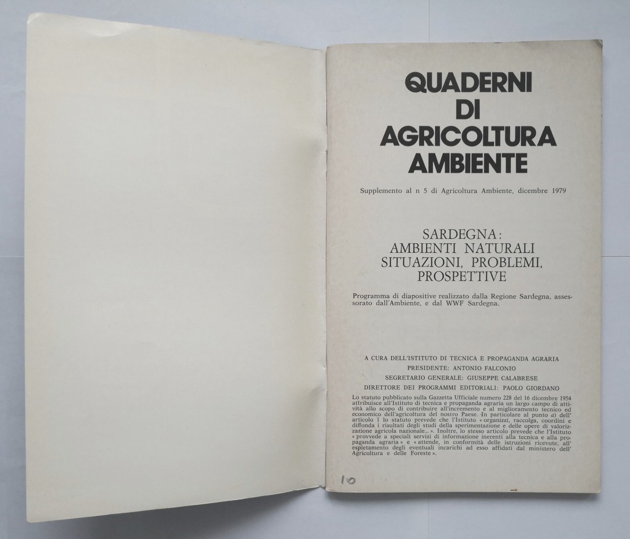 Supplemento al numero 5 di Agricoltura Ambiente, dicembre 1979. 96 pagine, illustrazioni in bianco e nero fuori testo. Copertina editoriale in brossura. Stato di conservazione: molto buono (pagine normalmente ingiallite) Libro usato saggistica