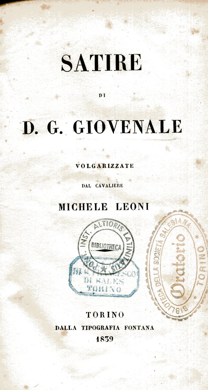 Satire di D. G. Giovenale volgarizzate dal cavaliere Michele Leoni