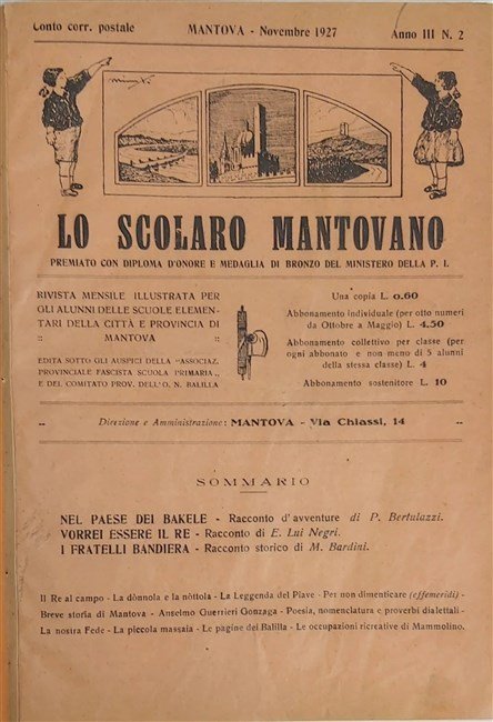 SCOLARO MANTOVANO (Lo). Rivista mensile illustrata per gli alunni delle scuole elementari della città e provincia di Mantova.
