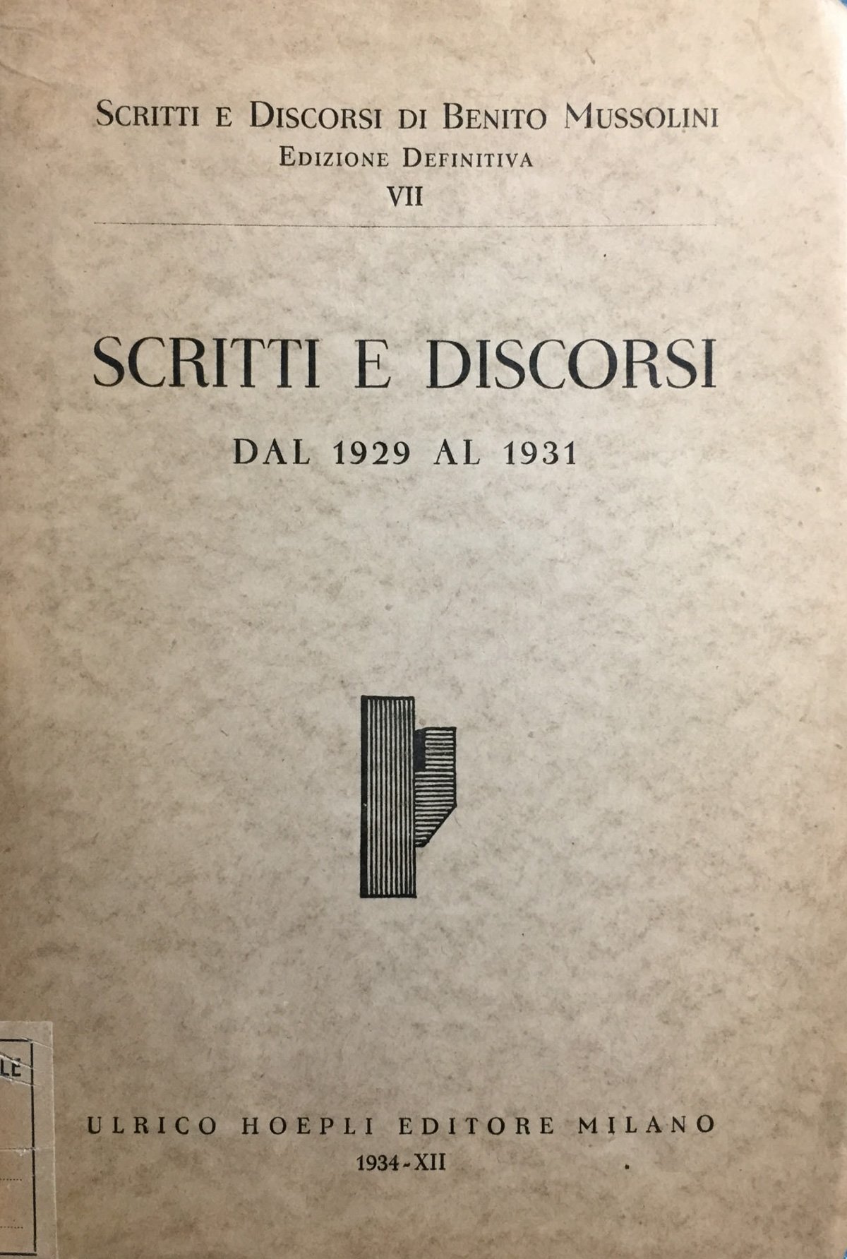 Coll. Scritti e discorsi di Benito Mussolini. Edizione definitiva, 7. Intonso. 945 – Ba In Ottavi (15-23cm ) Ottimo (Fine) Ottimo