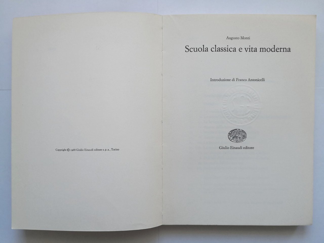 SCUOLA CLASSICA E VITA MODERNA di Augusto Monti 1968 Einaudi Libro Saggi