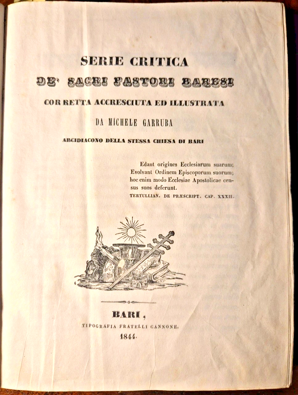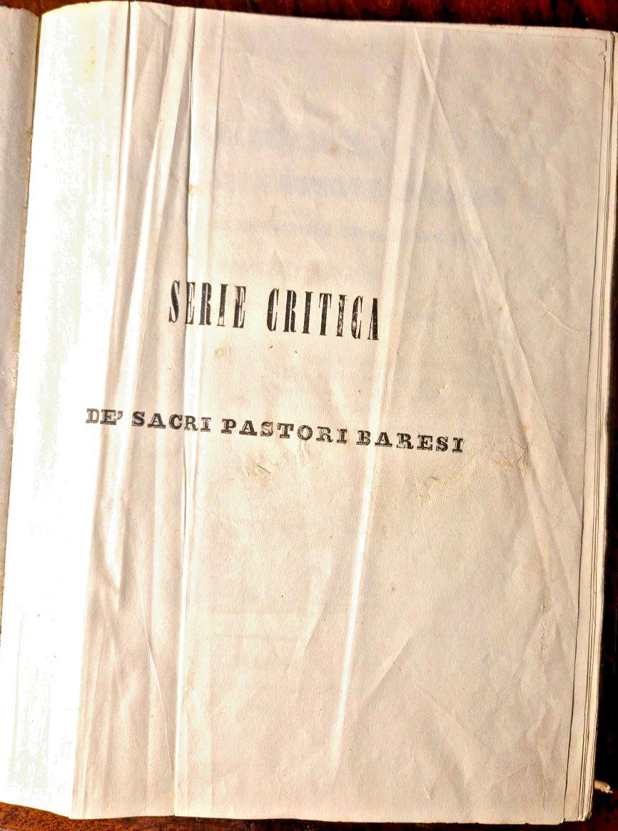 SERIE CRITICA DE SACRI PASTORI BARESI di Michele Garruba 1844 Cannone Libro Bari