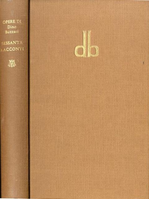 6. ed. 563 p. ; 20 x 12 cm. Narratori italiani, 54. Opere di D. Buzzati, 1. «Sessanta racconti» è una raccolta di racconti di Dino Buzzati edita nel 1958. La raccolta fu curata personalmente dallo scrittore che scelse i primi 36 racconti tra quelli già pubblicati in tre diversi volumi: «I sette messaggeri», «Paura alla Scala» e «Il crollo della Baliverna». I successivi racconti non erano ancora apparsi in alcuna raccolta ma non erano inediti, già stampati tra il 1953 il 1956 su quotidiani o riviste; fa eccezione il racconto «L'inagurazione della strada» del 1948, massicciamente rielaborato per l'occasione. Il libro fu pubblicato nel marzo 1958 nella collana "Narratori italiani", vincendo nello stesso anno il Premio Strega. Legatura editoriale, coperta in cartone rigido di colore marrone, con impresso il titolo in oro al dorso, al piatto logo della serie «Opere di Dino Buzzati». Codice libreria 8818.