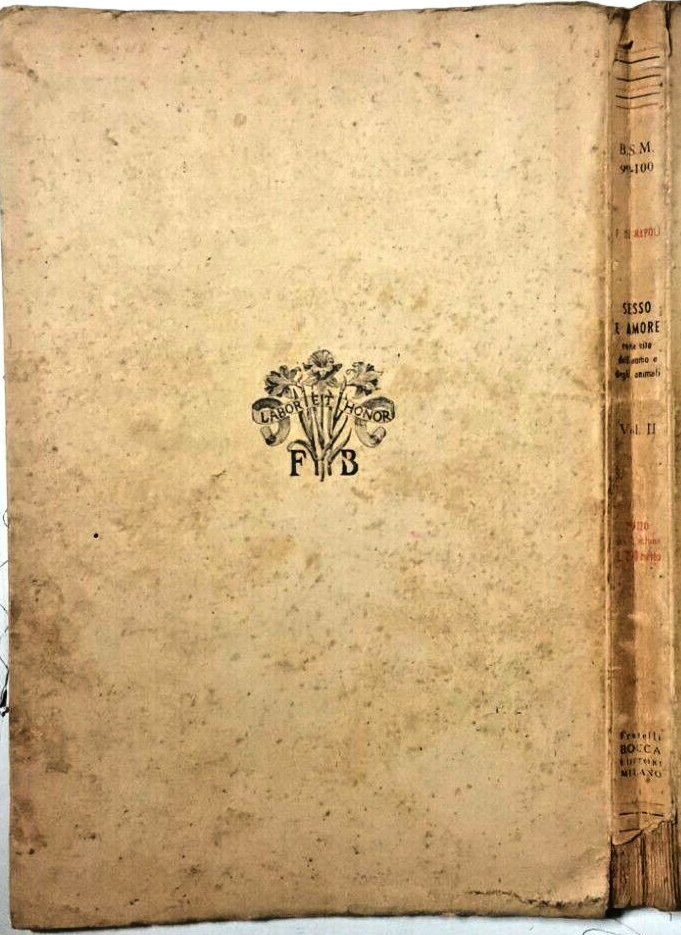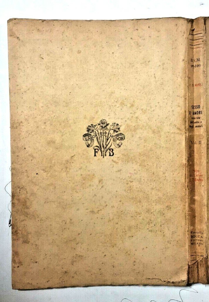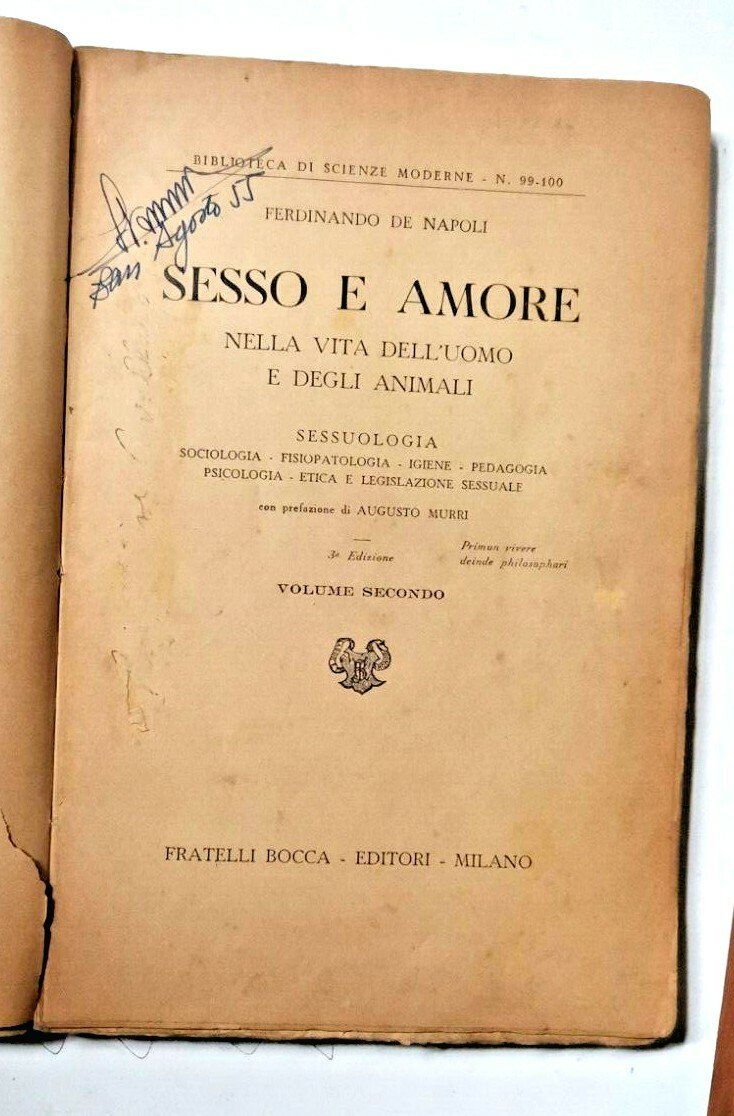 SESSO E AMORE nella vita dell’uomo e degli animali di Ferdinando De Napoli. Solo il volume II: sessuologia: sociologia, fisiopatologia, igiene, pedagogia, psicologia, etica e legislazione sessuale con prefazione di Augusto Murri.