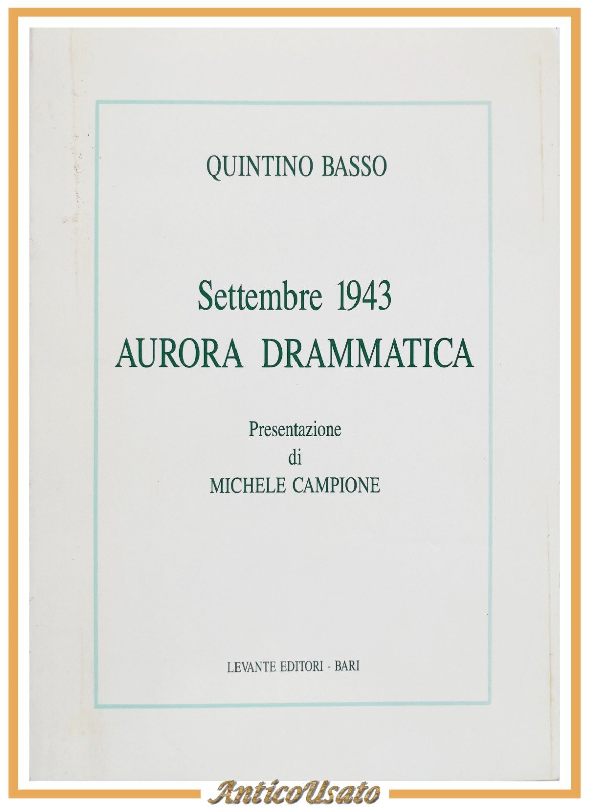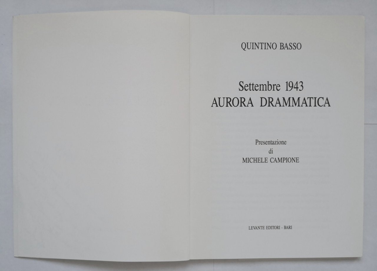 SETTEMBRE 1943. AURORA DRAMMATICA di Quintino Basso. Presentazione di Michele Campione.