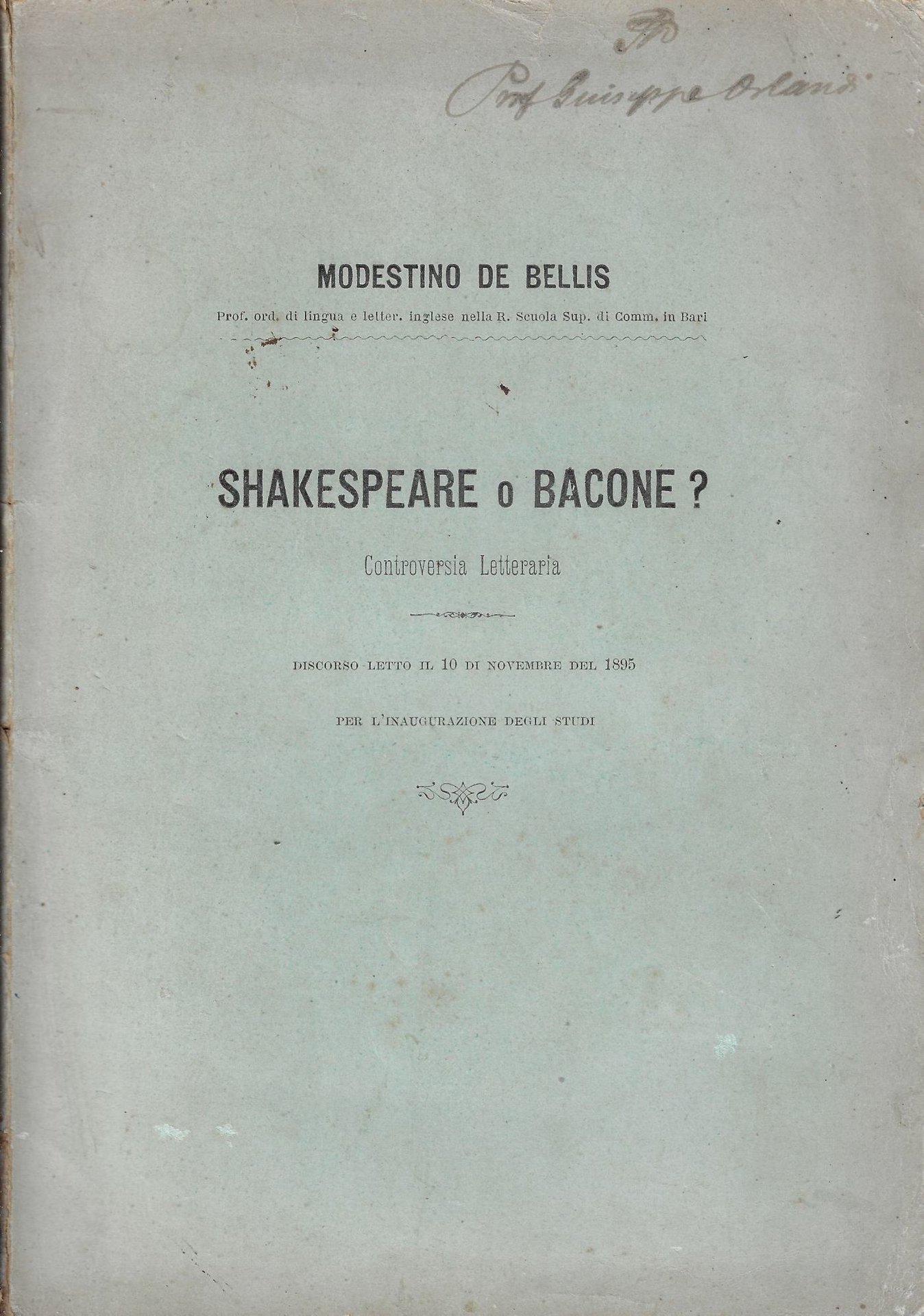 Shakespeare o Bacone ? Controversia letteraria : discorso letto il 10 novembre del 1895 per l'inaugurazione degli studi