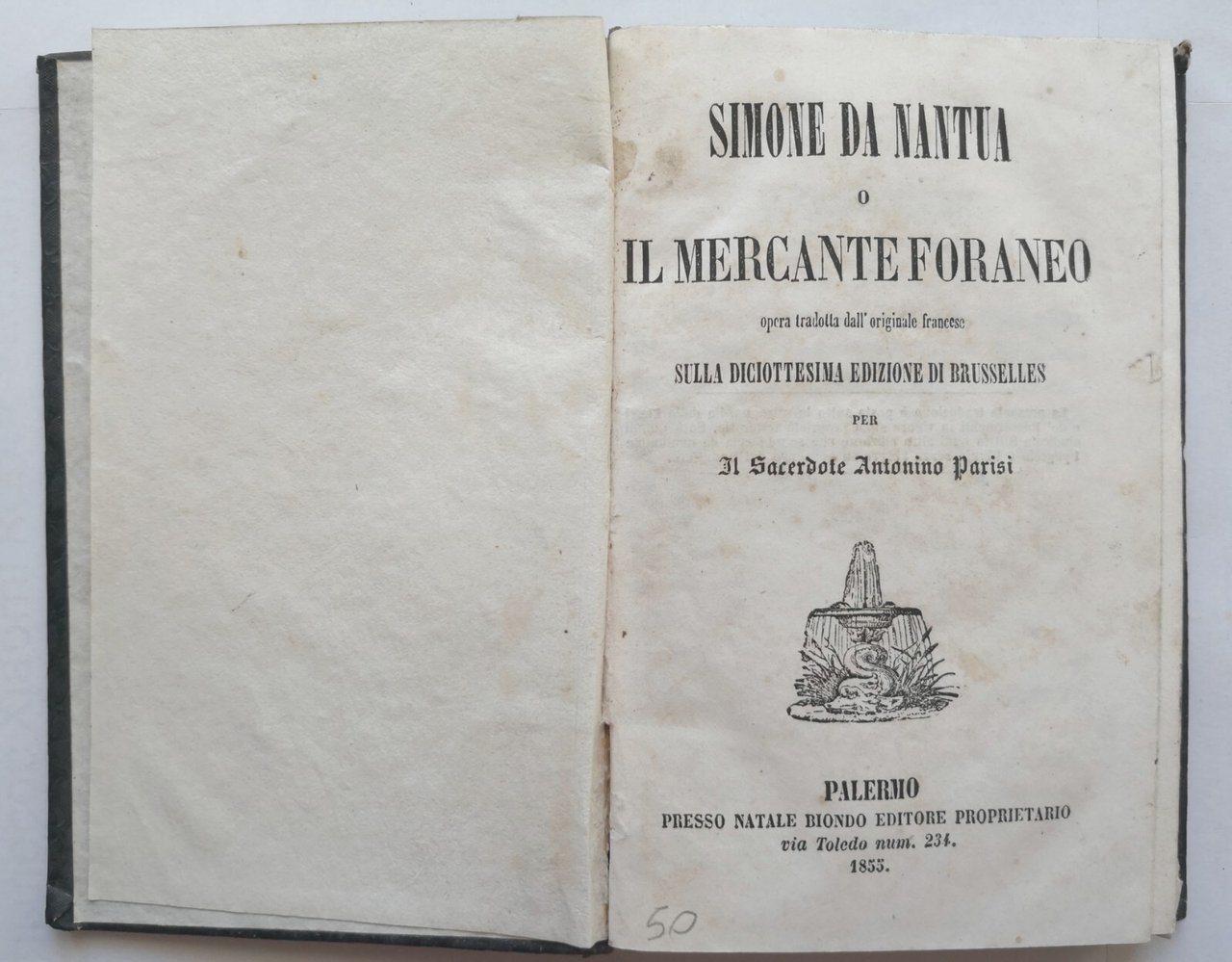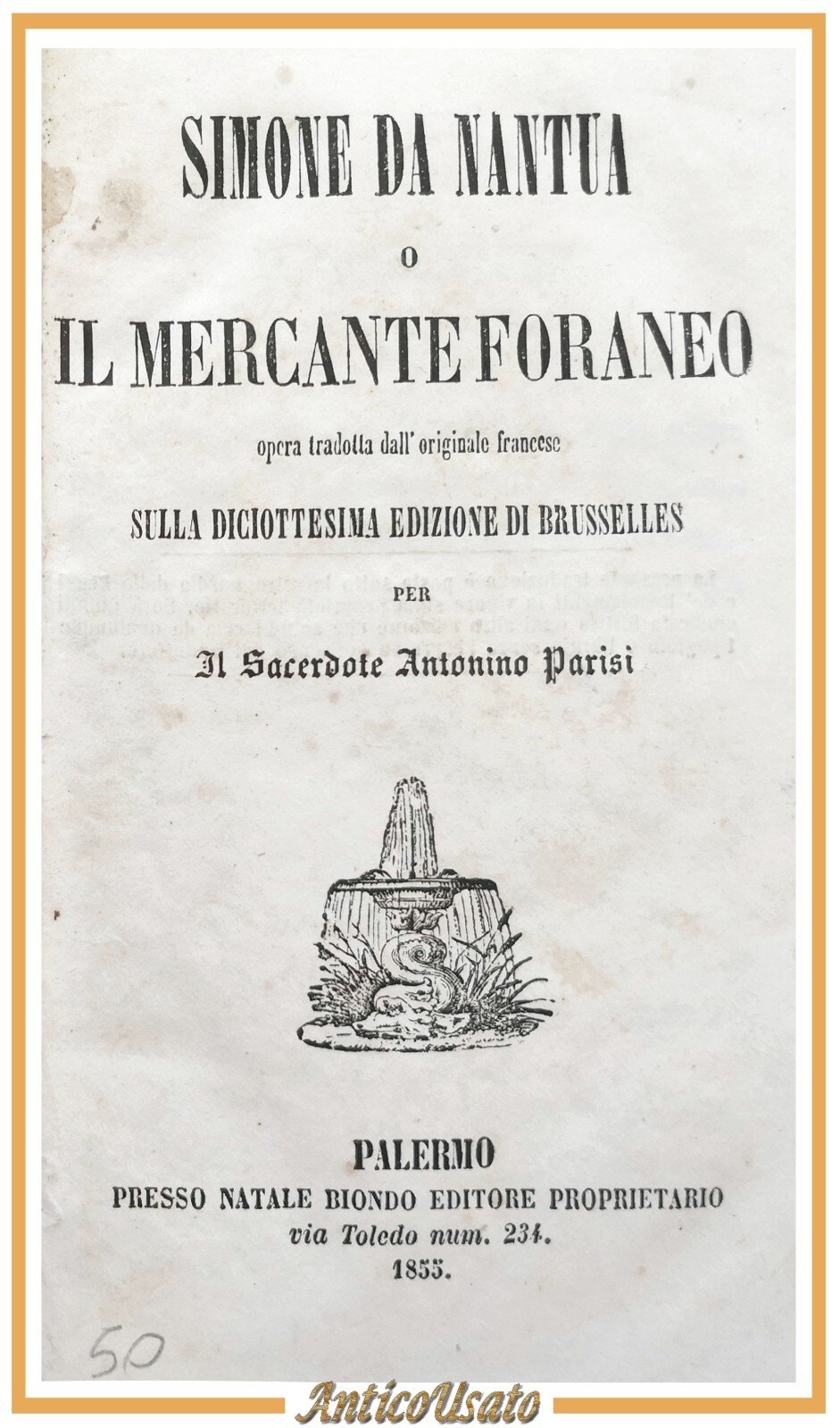 SIMONE DA NANTUA O IL MERCANTE FORANEO di Antonio Parisi 1855 Biondo Libro antic