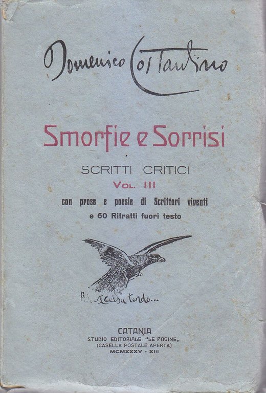 SMORFIE E SORRISI Scritti Critici Volume 3 di Domenico Costantino 1935 Catania