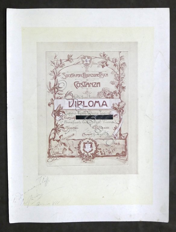 Soc. Educazione Fisica Costanza - Milano - Diploma Lotta Greco Romana - 2° Classificato Categoria Pesi Piuma - gennaio 1929 Dimensioni: 25 x 33 cm ca. Condizioni molto buone.